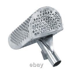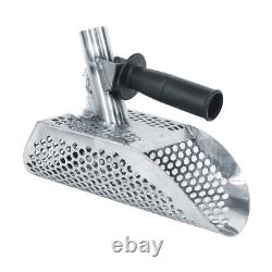 Dune Poseidon 10" x 5" Stainless Steel Metal Detector Sand Scoop with 2 mount options. Designed with hexagon shaped holes (7mm). Best for finding ancient coins and fine jewelry! This scoop includes 2 mounting options: Top hole for pole extension & Front hole for handle. Made of anti-corrosion stainless steel.