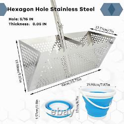 Stainless Steel Beach Sifter, Shark Tooth Sifter Sand Scoop Sand Sifter For Beach. Efficient Sand Collection: Boosting your sand debris capture, our wide rake's pointed tines efficiently dig deeper and generously shovel sand debris into the basket for enhanced sand capture. Products of Fine Quality: Our sand rake for beach is made of strong material that resists erosion and wear, ensuring dependable performance. Built to last from high-quality stainless steel, it boasts excellent rust-proof properties for safe use over time.